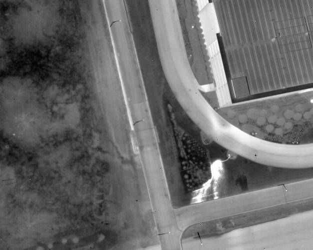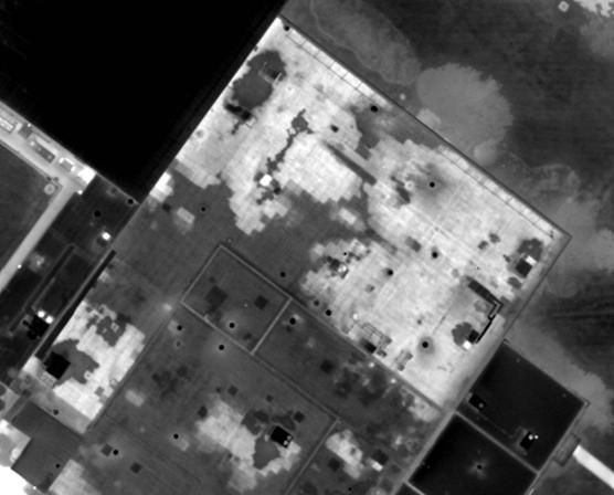 Figures 7) Thermal image of a flat roof (wet areas are lighter).